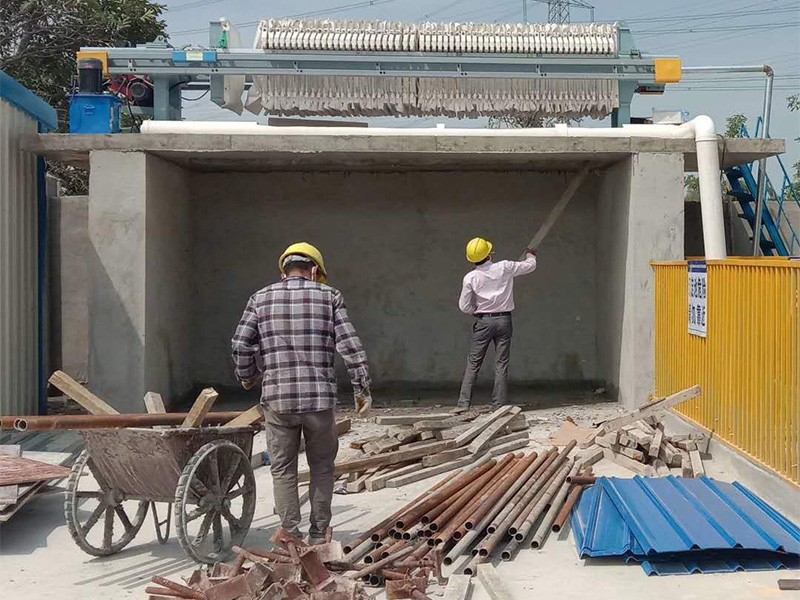 液壓壓緊板框式壓濾機由主機(機架和濾室)、液壓部件和電氣等部分組成。